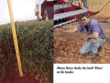 When the lentils are as high as an elephant's eyeWell, it's time again to review the annual saga of Barry Lutze, 'Gwendom', near Ardrossan on South Australia's Yorke Peninsula. Our interest is not just because of his dashing good looks but also because he is now in his eighth season of growing crops with R.U.M. This means that every paddock on his property has now been well sprayed with R.U.M. with the predictable benefits of above-district-average yields, premiums earned on most crops, less fertiliser usage every year, fertile bacteria-laden soil that stays put in hot, dry northerly winds, and stubble that breaks down faster than anyone else's. It also helps that Bazz is a good farmer. And the accompanying picture of last season's lentil crop is proof that he has got his act together. Now, lentils need to be carefully monitored for grey mould especially if the weather turns wet and warm. It's not unusual for some farmers to spray five or more times to keep the crop going. Why is it then that Bazz can keep his fungicide spraying to a minimum? The chemicals aren't cheap, so despite good prices for lentils, profitability can still take a battering. His 2003 Northfield lentils (pictured) were sown with 80kg/ha of MAP and 6-7L/ha R.U.M. They yielded 13 bags/acre, were No. 1 grade and didn't require cleaning. How did your's go?